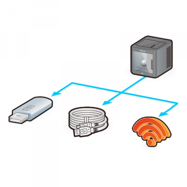 Sindoh 3DWOX çok sayıda bağlantı seçeneğini bir araya getirerek, 3 boyutlu baskı sürecini hiç olmadığı kadar kolay hale getirir. Cihazı usb bağlantı kablosuyla direkt olarak bilgisayarınıza bağlayabilir veya wi-fi özelliği ile kablosuz olarak baskılarınızı alabilirsiniz. Baskısını almak istediğiniz modelleri Usb belleğe yükleyerek direkt olarak baskıları alma imkanına da sahipsiniz.